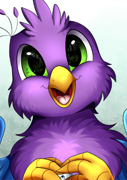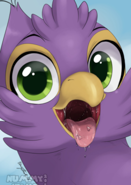 As a gryphon, Gyro's digestive system starts with his beak. He has no teeth, but can bite down with the sharp edges. He must make a bobbing motion to swallow. His internal flesh is natural colored.