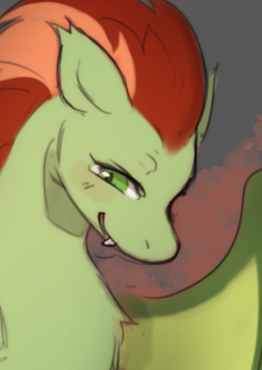 Like most batponies, Lunar has a pair of sharp fangs, which she can use to suck the blood out of her prey. She has a broad tongue and produces copious saliva. Her internal flesh is natural colored.
