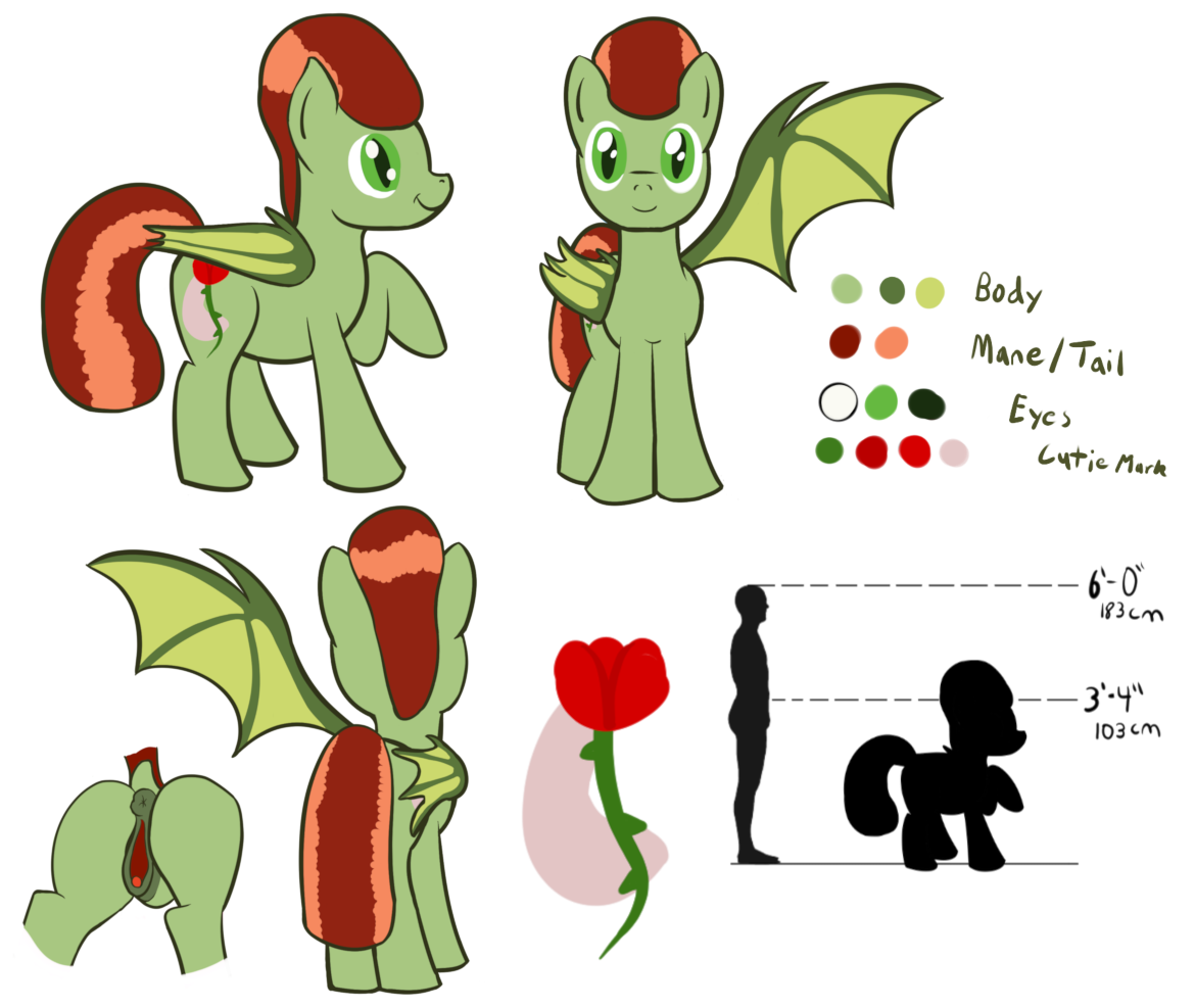 Lunar's got a pretty standard equine vulva., teardrop shaped with a slit that drops from her anus with a clit at the bottom.